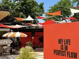 For those in Bangsaen who aren't sure where to go, we recommend this one. The cafe's theme is bright orange, and the atmosphere is pleasant by the sea. They offer coffee, desserts, and food. They're open from morning until evening.