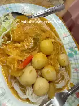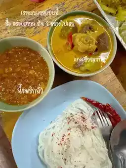 Today, we're going to recommend a khanom jeen restaurant that's incredibly delicious, just as the hype and reviews say. I searched Google before coming here. I was really hungry, but I wanted something with noodles. I stumbled upon this restaurant, and the reviews showed it had a high rating. I didn't expect a roadside stall to be this delicious. The owner was also incredibly friendly. However, we arrived in the evening, and almost all the sauces were sold out. 🥹 If you're craving something to eat, this restaurant opens as early as 11 a.m. You have to give it a try. You'll be hooked! 😆