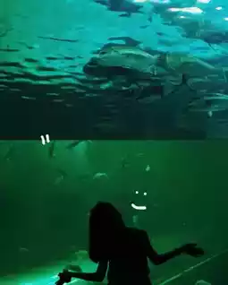 When we entered, it was… so crowded 😅 But it was worth it because there were so many marine animals, including stingrays, jellyfish 🐠, small fish 🐢, turtles 🦈, sharks, and even a huge, impressive glass tank. It felt like you were actually walking under the sea 🌊✨