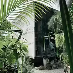 - Indoor, a glass-enclosed space that receives natural light, perfect for working or reading.