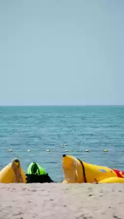 Safe swimming in the water, with lifebuoys available for rent and showers.