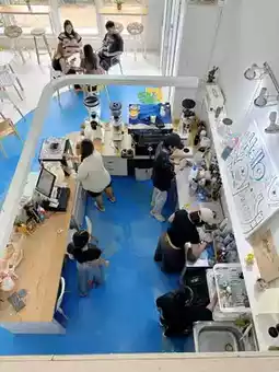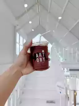 While we were strolling along Bangsaen Beach, we came across this cafe. It was a white cafe with a blue sign that said ARTORY. So, we took our daughter inside. Upon entering, we saw a beautiful counter bar. We looked at the menu and ordered an iced dark cocoa for about 90 baht.