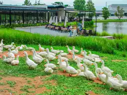 Come meet the adorable army of ducks and goats amidst the riverside and nature of Chonburi. There are both indoor and outdoor areas. The cafe and restaurant offer plenty of photo opportunities. They offer a wide variety of delicious food, drinks, and desserts. You can also feed the ducks and goats.