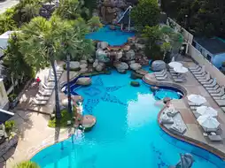 Stay at a beachfront hotel with a stunning, large swimming pool featuring a magnificent waterfall. Bring your family to Long Beach Garden Hotel & Pavilions, a spacious accommodation with a great atmosphere, offering plenty of activities and a grand swimming pool with a beautiful waterfall for relaxation and fun. Take a stroll along the beach and enjoy a variety of room options, from romantic couple suites to family rooms, all with sea views and full amenities. Additionally, the hotel features a delicious Thai restaurant. Conveniently located near tourist attractions and just a short trip from Bangkok.