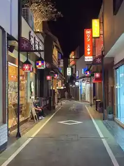 Bangsaen Toshin, a Bangsaen landmark decorated in Japanese style, is filled with restaurants, Japanese desserts, and cute decorations, making it feel like you're strolling through Japan. Stop by during the day for some lovely, vibrant photos, but if you visit in the early evening, you'll find many shops lit up, creating a different atmosphere. We visited in the evening, and some shops were starting to close, but there weren't many people, making it easy to take photos.