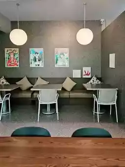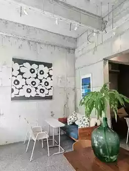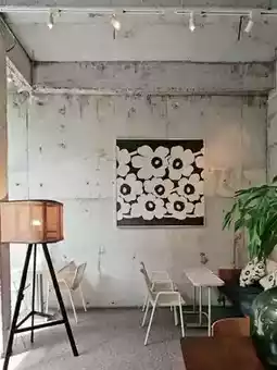 The shop has several seating areas, yet it's airy and spacious, with cool air conditioning. Outside, there's a lovely corner, a concrete archway, where you can sit and take some cool photos.