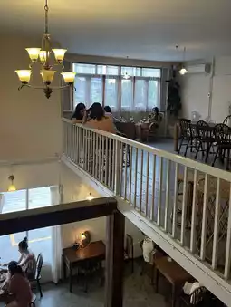 The cafe is neither small nor large, spanning two floors and offering a fair amount of seating. There are both indoor and outdoor seating options. The airy and comfortable space is inviting, perfect for relaxing and enjoying the chill atmosphere. The matcha here is delicious and rich, ceremonial-grade. The peach tea is also delicious and refreshing. For coffee lovers, the cafe also offers a wide selection of beans.