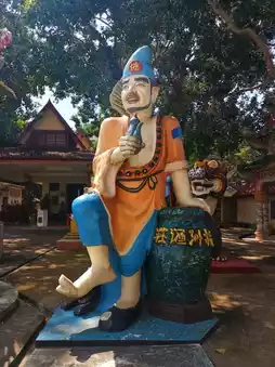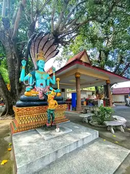 🔥 Khao Sam Muk is a must-visit destination for those seeking Buddha images and a large statue of the Goddess Guan Yin. Sala Rishi is a must-visit spot. The right-hand entrance features a large statue of the Goddess Guan Yin. Inside, you'll find statues of various deities, including the Grandfather Rishi, and Buddha images. The area is lined with large trees providing shade, creating a peaceful and tranquil atmosphere, and boasting distant sea views.