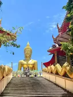 💢 The surroundings of Wat Khao Phra Yai are shady and peaceful, perfect for making merit and relaxing. In addition to paying homage to Luang Pho Yai, you can also climb the Naga staircase to pay homage to several other Buddha images. There are also numerous bells for you to ring for good fortune. The temple is easily accessible, with ample parking available. The temple is open from early morning until evening, making it a popular destination throughout the day. It's also perfect for tourists of all ages who want to experience the tranquility and spiritual fulfillment of Pattaya.