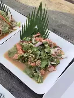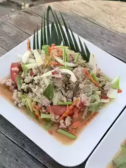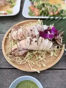 Atmosphere/Location: An island-style cafe located on the Bangsaen beach. The atmosphere is wonderful, allowing you to enjoy the sea breeze and watch the romantic sunset. There are several seating areas to choose from, both indoor and outdoor. A wide selection of food and beverages is available, including fresh and delicious seafood.
