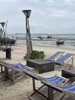The restaurant is beautifully decorated, with its own unique style. The atmosphere is pleasant, right on the beach. There are both floor tables and sand tables. The restaurant isn't too hot. The staff provided excellent service. We went on a Sunday lunchtime, and it was crowded, but the food didn't take long.