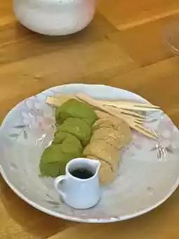 • Japanese sweets that go well together, such as Kinako Dango, Warabi Mochi, Matcha Ice Cream with Red Beans, etc. — Desserts greatly enhance the green tea experience.