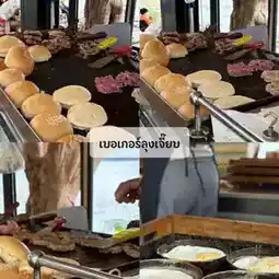 Enjoy a delicious lunch at Uncle Jeab's Burger 🍔, a juicy burger with melted cheese that's the best!