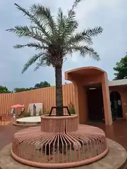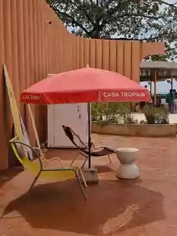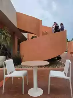 There are both indoor and outdoor areas filled with bright, brick-orange tones 📸 Decorated in a tropical style, perfect for taking fun photos.