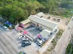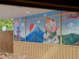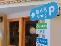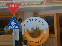 The cafe is located on the side of the road, making it easy to find. There's ample parking available 🚗. The exterior is decorated in a Japanese style, complete with traffic lights and street signs in Japanese 🏮, making it feel like you're really strolling through Kyoto.