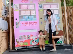 Today, Esther took her mom to a cute Japanese-style cafe called Kyoto Shi Cafe 🏯🍵. Upon entering, it felt like she'd been transported to Kyoto. Bright pink cherry blossoms adorn the entrance 🎐, creating a warm and inviting atmosphere that's perfect for taking photos.