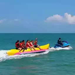 🍌💦 End with a fun activity! Ride a banana boat with friends, laughter echoing through the sea. It's so much fun you'll definitely want to come back again!