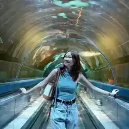 1. Giant Fish Tunnel: Walk through a clear glass tunnel to observe schools of fish swimming around you up close, giving you the feeling of diving deep under the sea. This popular photo spot is a must-see.