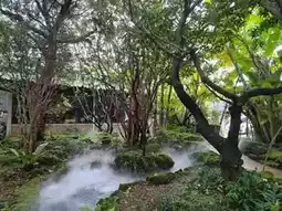 A lush artificial forest: Stepping into the space feels like you've been transported to another world, filled with a variety of trees and lush moss, creating a cool and refreshing sensation. The gentle mist gently emanates from the heat.