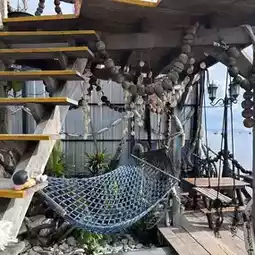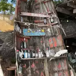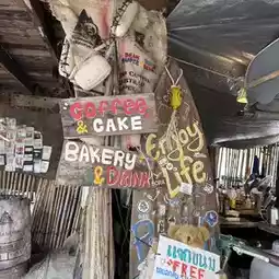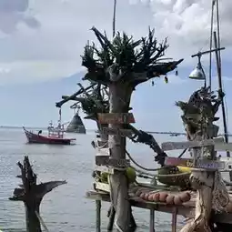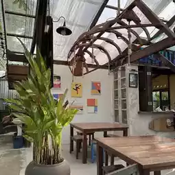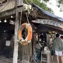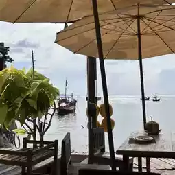 It's a beachfront cafe in Bangsaen, decorated in Balinese-style wood.