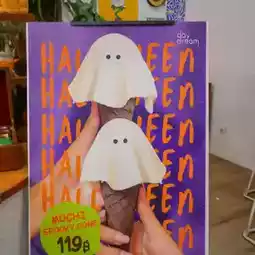 And the highlight of this season is the Mochi Spooky Cone, an ice cream cone adorned with the cutest little ghosts. Choose your favorite flavor and it's covered in soft, chewy mochi. It's both delicious and adorable.