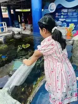 A favorite area for kids is the underwater tunnel, which feels like walking under the sea. See large fish swimming around, such as sharks, rays, and even giant mackerels.