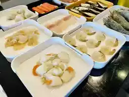 🌟Enjoy unlimited premium ingredients: beef, pork, fresh seafood, river prawns, glass shrimp, salmon, scallops, New Zealand mussels, and over 100 other dishes. 🌟Fried food, appetizers, roast duck, pizza, soy-marinated shrimp, desserts, bingsu, ice cream, fruit, and drinks. Order anything you want. The restaurant also sells delicious gelato.