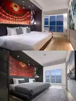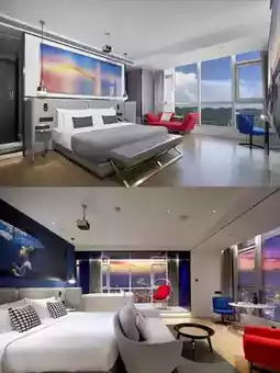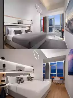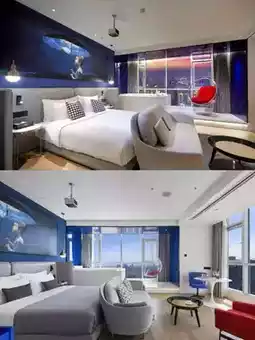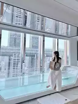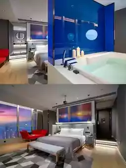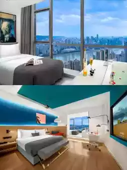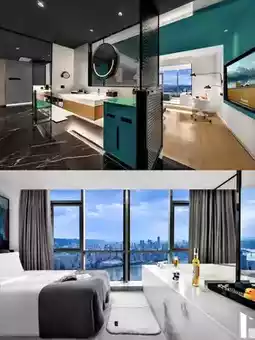 The room is a highlight, with panoramic floor-to-ceiling windows that are simply amazing! Standing in front of the window, you can enjoy the beautiful view of the city. During the day, you can see the bustling traffic and the tall buildings, and at night, the dazzling neon lights flicker like a beautiful painting unfolding at your feet. Every photo you take is like a masterpiece📷 Soak in the bathtub by the window, enjoy the relaxing time, and overlook the city view. This feeling is so unique.