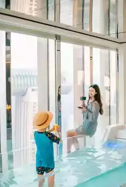 The water temperature can be adjusted, so you don't have to worry about children getting cold