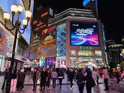 Today we stopped by Chongqing. Our accommodation was near the Jiefangbeilu Pedestrian Street. The atmosphere is similar to Siam Square, but this place is much bigger and has many alleys. The buildings are quite large and sell many luxury branded products.