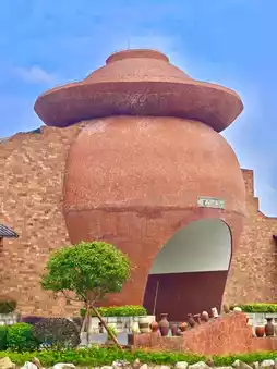 There is a huge ceramic pickle jar at the entrance.