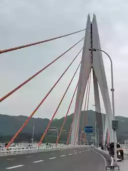 The bridge is 858 meters long. The bridge has two levels to support cars and Chongqing's rail transportation.