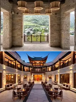From the moment you step into the hotel, you'll be captivated by its unique atmosphere. Surrounded by lush trees and distant mountains, it's like a painting carefully arranged by nature. Walk along the winding path and listen to the sound of flowing water and birdsong, and you'll forget all about the hustle and bustle of the city.