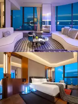 🌵The hotel design and decoration are full of modern and high-end sense. Every detail is exquisite and creative. There is a transparent bathtub, and the bathtub itself is very unique. The room is equipped with Xiaodu voice assistant, smart toilet, super large projector, Bvlgari shampoo, body lotion, conditioner, and Dyson hair dryer. You can enjoy the night view of Jiefangbei and the river view.