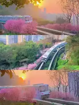 ✨Highlights: Metro Line 2 "Train to Spring" whizzes through the pink sea of flowers🚄, with the thousand-year-old city wall and plum blossoms appearing in the same frame, a magical 8D mountain city photo background! Hanfu/JK girls must go📸