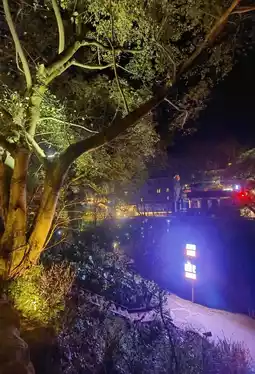 In the evening, go to Jingangbei Chongqing Jingangbei Old Village Hot Spring Hotel to enjoy the night view of the ancient village, taste the special snacks in the small shop inside, and experience making tea around the stove.