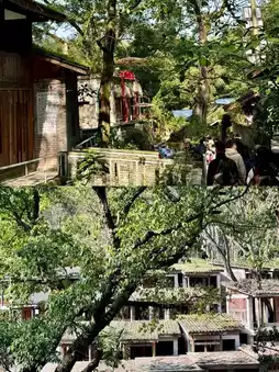 Hidden away in Chongqing, there's a therapeutic ancient village nestled amidst mountains and rivers, teeming with lush greenery. It's as if nature itself meticulously crafted this work of art. The rich vegetation and moss-covered rooftops exude a rustic and tranquil charm. Built along the river, the village is dotted with hot springs, offering both the charm of an ancient settlement and the majestic beauty of rivers and mountains. Nestled between two mountains, it resembles a miniature Three Gorges, captivating visitors with its serene ambiance.