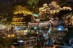 When night falls and the lights come on, the lights of the Dongshuimen Bridge are lit up, reflecting the ancient style and fragrance of Xiahaoli, which is breathtakingly beautiful!