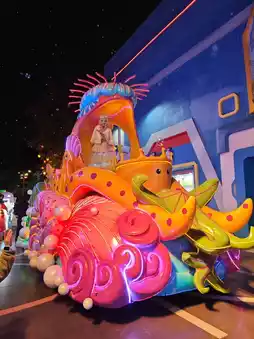 The dazzling Happy Grand Parade in the evening was a feast for the eyes. Every time I watch it, there are new characters and costumes, which is a constant surprise! 🎠