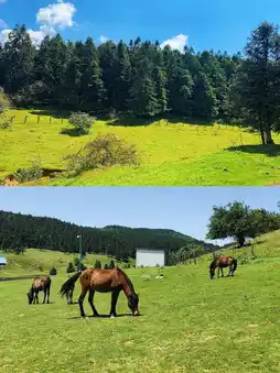 The main mode of transportation within the scenic area is a small train with two stops: the first is the grassland, and the second is the racecourse. Walking back a short distance from the racecourse stop, you'll find the popular wavy road, a great photo opportunity. Those who want to ride horses can do so at the racecourse. Those who prefer to stay on the train can return directly to the terminal station. It's all about flexibility.
