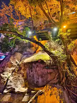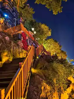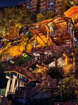 The Daijia Lane Cliffside Trail is Z-shaped, spiraling up the steep slope, connecting to the Daijia Lane neighborhood at the top and reaching the Jialing River via a pedestrian bridge at the bottom. The trail is about 750 meters long and, together with the old Daijia Lane neighborhood and Hongya Cave, forms the approximately 1.1-kilometer-long city wall trail, Daijia Lane branch. Here, visitors can enjoy scenic spots such as the Sajin Slope, Stilt House Side, Feixian Rock, Hongya City Wall, Cliffside Huangjue Fig Tree, and Cliffside River View. In addition, on the cliffside trail, you can clearly see the dense holes left on the surface of the mountain, which were made by the wooden piles supporting the stilt houses. These holes have a history of hundreds of years.