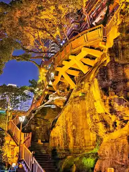 The Daijia Lane Cliffside Trail is located on the cliff between Kuixing Tower in Linjiangmen and Hongya Cave in Yuzhong District. Below the approximately 60-meter cliff is the Jialing River, facing Jiangbeizui and bordering Hongya Cave to the east. It is the site of the old Chongqing city wall.