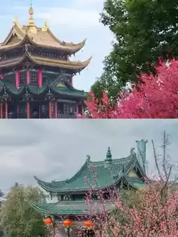 The red plum blossoms, cherry blossoms, and ancient temple architecture here are perfectly integrated. The petals and red walls and green tiles complement each other, making it both simple and romantic! In particular, the cherry blossom trees in front of the Mahavira Hall are blooming very luxuriantly. Taking pictures under the trees is really amazing! It is recommended to wear light-colored clothes for better photos~