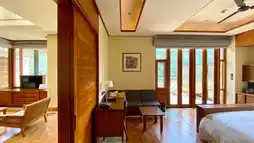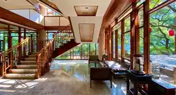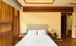 2. All the buildings in the hotel use a large amount of top-grade teak from Southeast Asia. The furniture in the book bar, tea room, bar, restaurant and other spaces in the main lobby are all made of high-quality solid wood, which is delicate, textured and full of quaint charm. The calligraphy, paintings, ornaments and books in the space exude endless tranquility, elegance and a strong literary and poetic atmosphere.