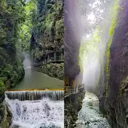 - Enter from the North Gate - Exit from the South Gate (recommended): Take the cable car down from the North Gate to enjoy the beautiful scenery of the canyon and save energy. After getting off the cable car, walk along the plank road and check in at the Knife Cave, Zhongxia Natural Bathing Beach, Xuantian Waterfall and other attractions in turn. The whole journey is about 6-9 kilometers and it takes 3-4 hours to walk and play. Finally, exit from the south gate and take the scenic area shuttle bus back to the tourist distribution center.
