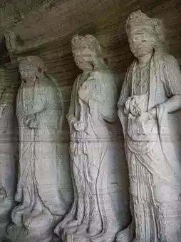 The cliff stone carvings built in the Southern Song Dynasty have nearly 10 statues. The statues are well-preserved, exquisitely carved, and lifelike.
