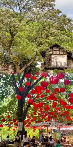 Walking under the tall Huangjue trees feels like stepping into a wonderland! Remember to wear comfortable shoes. There are vendors selling tea, drinks, and ice jelly along the way. Amidst the greenery, enjoy a cup of Gaiwan tea and the cool breeze—it's truly delightful!