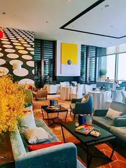 - **Fluffy Clouds**: Across the lobby’s double-height space on floors 61-62, three shimmering, metallic-plastic clouds replace traditional chandeliers, reflecting the sky outside for a bright, modern touch.