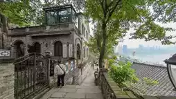 The moment I arrived, I was struck by the contrast—old buildings with black-tiled roofs and wooden windows lining the street, while just beyond them, the modern skyline of Chongqing shimmered across the Yangtze River. It felt like the past and present were woven into one incredible view.