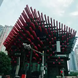 • Unique design – The exterior structure consists of long red and black beams designed to resemble "chopsticks" or striking wooden frames, becoming a landmark of the Jiefangbei district, evoking the feeling of ancient Chinese people embracing the power of heat.